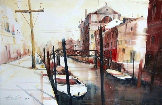 "Fondamenta Gherardini, Venedig" Aquarell 2011, 38 x 56 cm